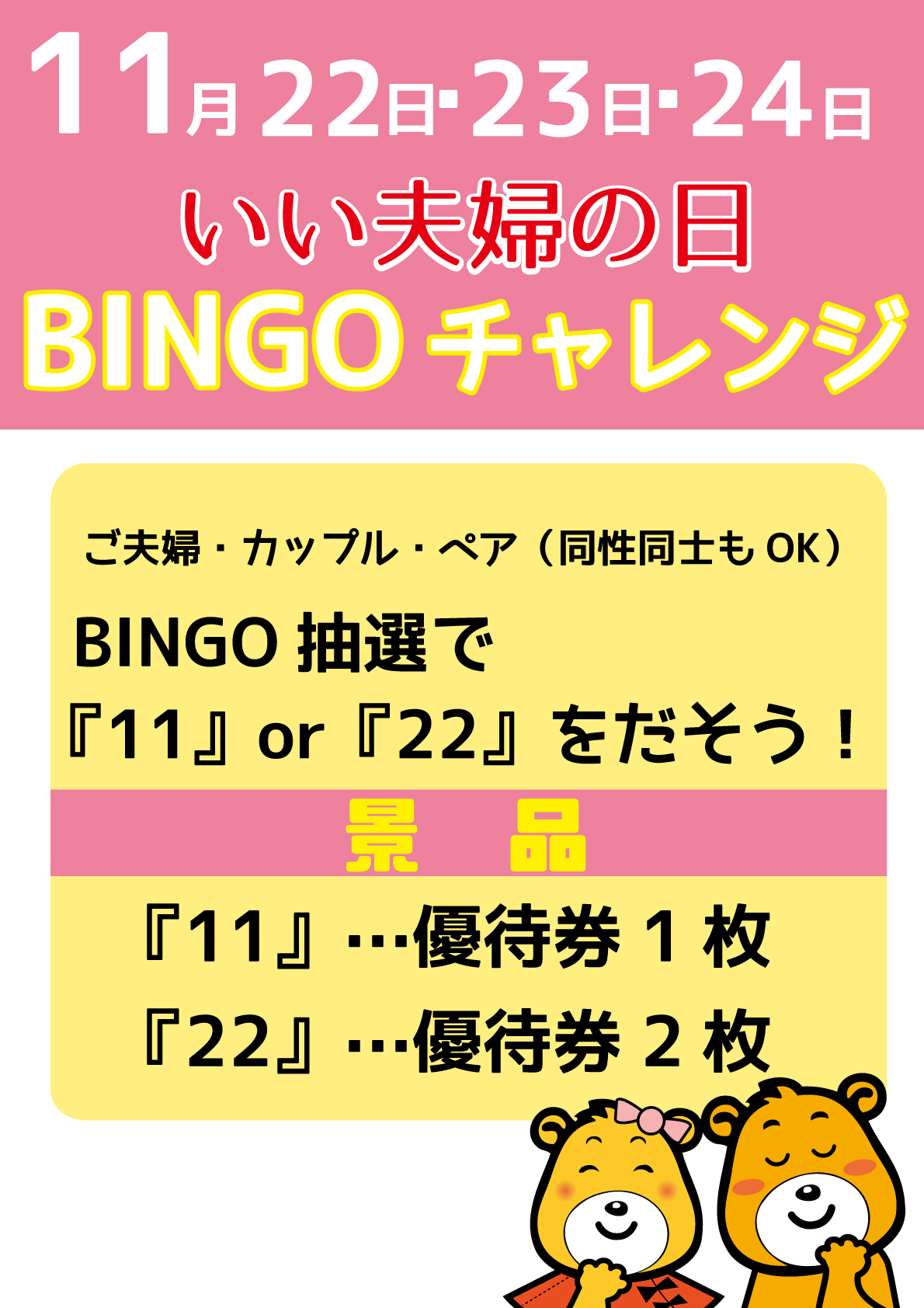 ご夫婦もしくはカップルでご来店のペアのお客様にBINGOチャレンジ!