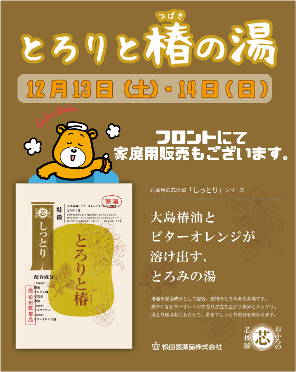 露天風呂にて松田医薬品様コラボ湯[とろりと椿の湯]開催(*‘ω‘ *)