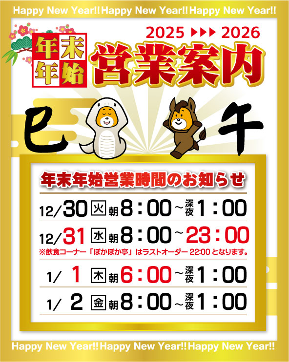 【年末年始営業時間のご案内】