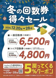※価格は税込み※一般、シニアともに回数券は11枚綴り※回数券に有効期限はございません