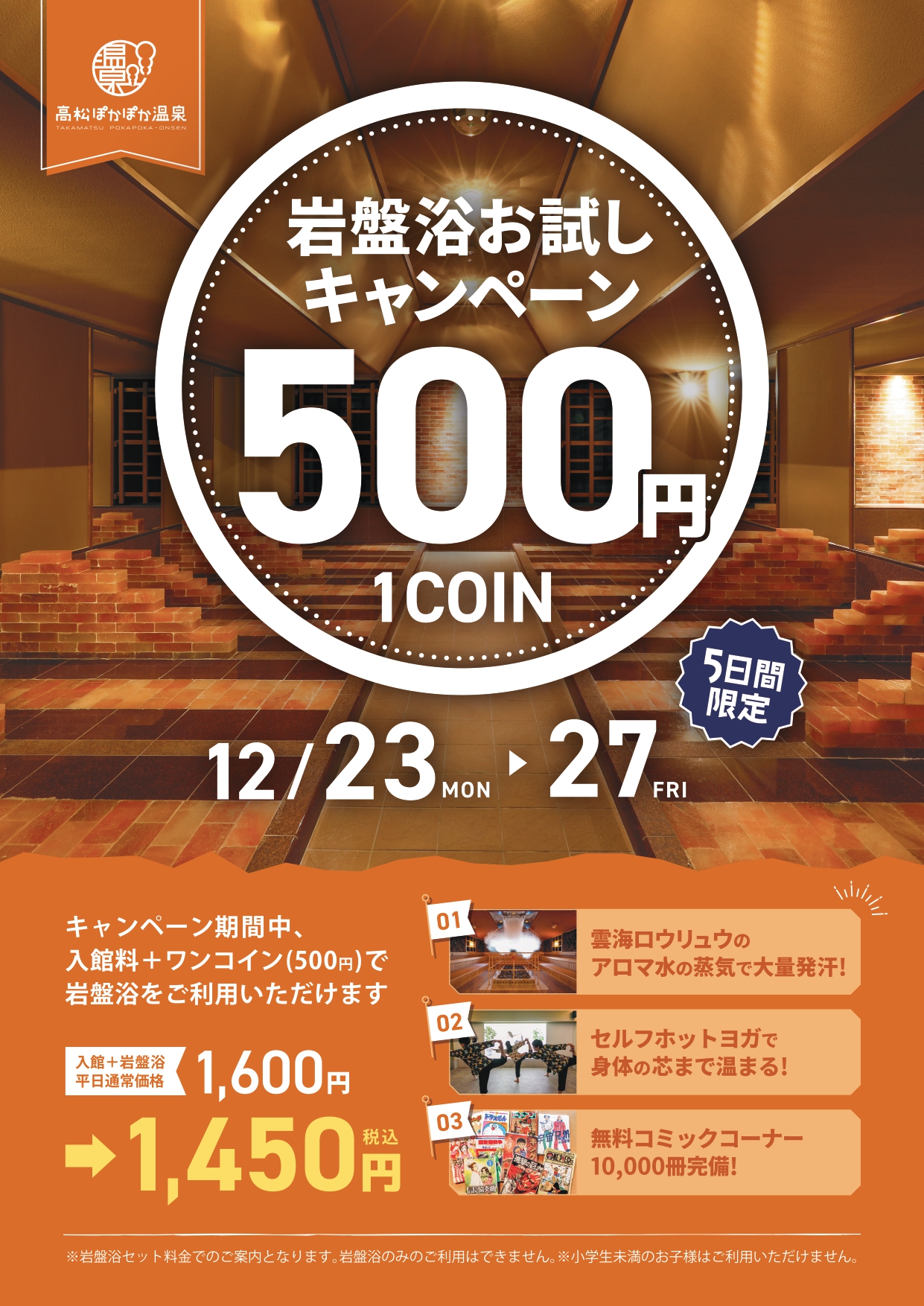 2024.12.03岩盤浴お試しキャンペーン。ワンコインで楽しめる平日限定の5日間