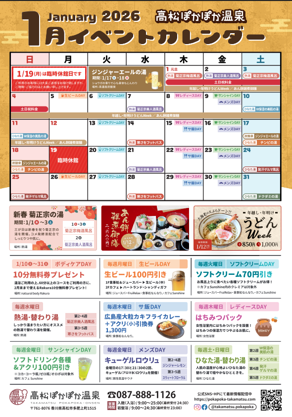 高松ぽかぽか温泉の楽しい1月のイベントカレンダー