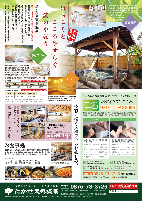 平素より「たかせ天然温泉」をご利用いただき、誠にありがとうございます。