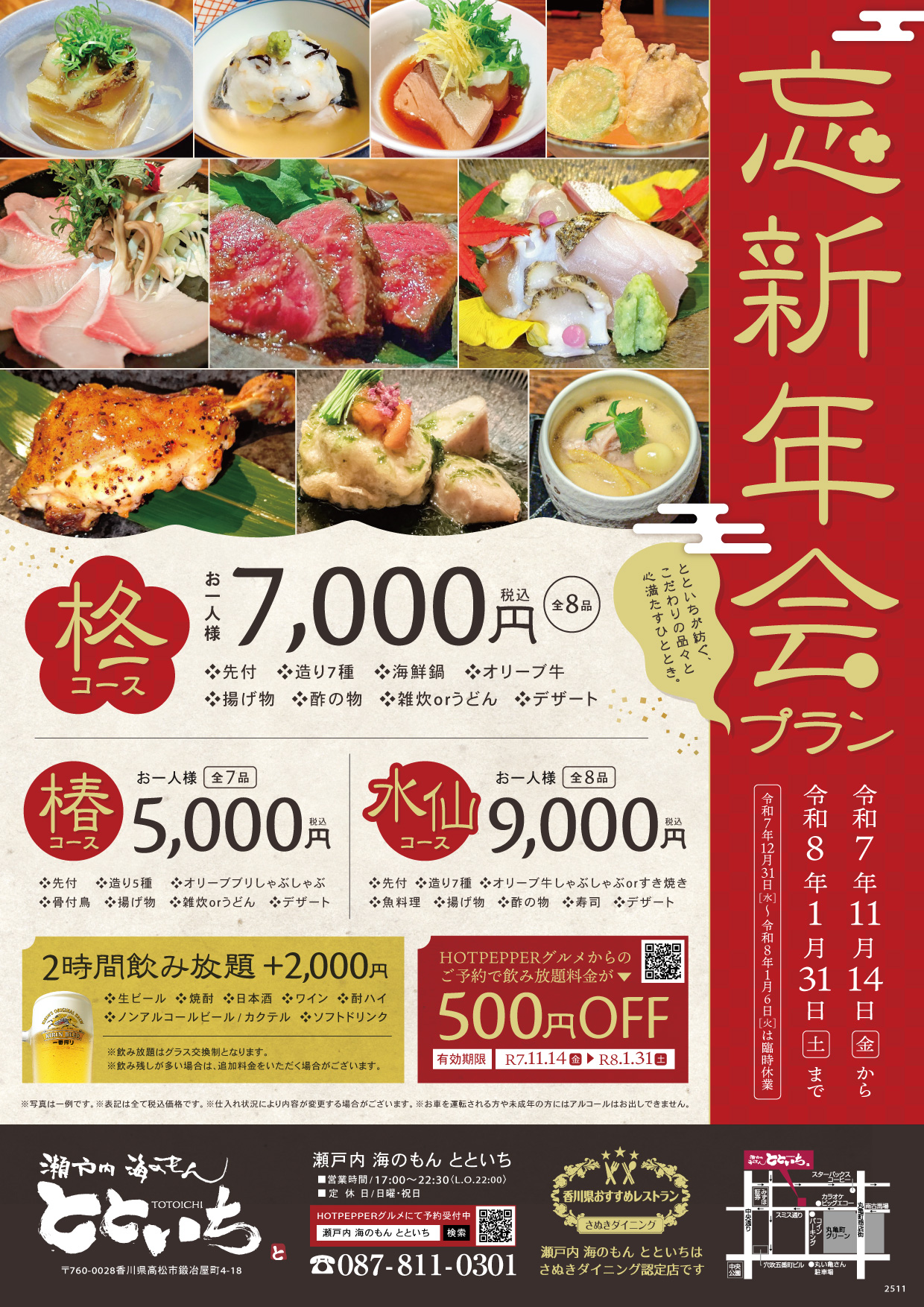 2025.11.01【令和7年11月14日(金)~令和8年1月31日(土)】忘新年会プラン受付中!