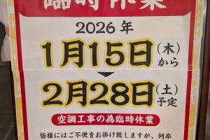 日頃より三瀬温泉やまびこの湯をご愛顧いただき、誠にありがとうございます。誠に勝手ながら、食事処の空調設備改修工事に伴い、下記の期間中「食事処やまびこ亭」を休業させていただきます。【食事処休業期間】2026年1月15日(木)~2月28日(土)予定休業期間中はお客様にご不便・ご迷惑をおかけいたしますが、何卒ご理解賜りますようお願い申し上げます。なお、工事の進歩状況により、休業期間が変更となる場合がございます...